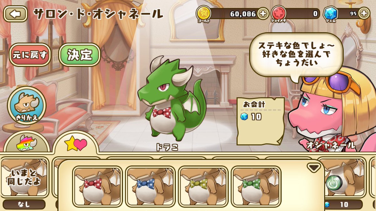 担当Pです。来週のアップデートですが、以前お知らせしたドラコのおしゃれサロン、「サロン・ド・オシャネール」が開店予定です。カラーの変更や様々なワンポイントの設定が可能になります。ドラコをあなた色に染めてください(ベタですみません)。 pic.twitter.com/abKgczobtq— フレンドラ(公式) (@Friendra_farm) April 21, 2016